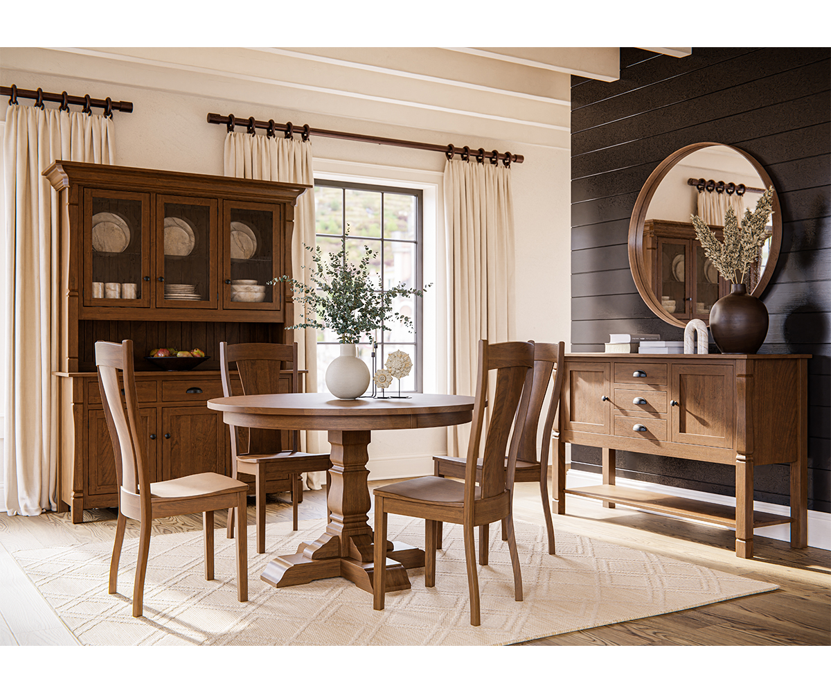 This Collection Includes: • Ashville Table • Ashville Hutch • Ashville Corner Hutch • Ashville Side Board • Ashville Chair