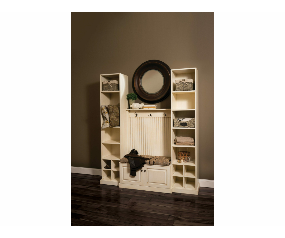 Dimensions: 70¼”W x 18½”D x 80″H Towers: 17⅛”W x 14½”D x 80″H Center Bench: 37½”W x 18½”D x 55″H
